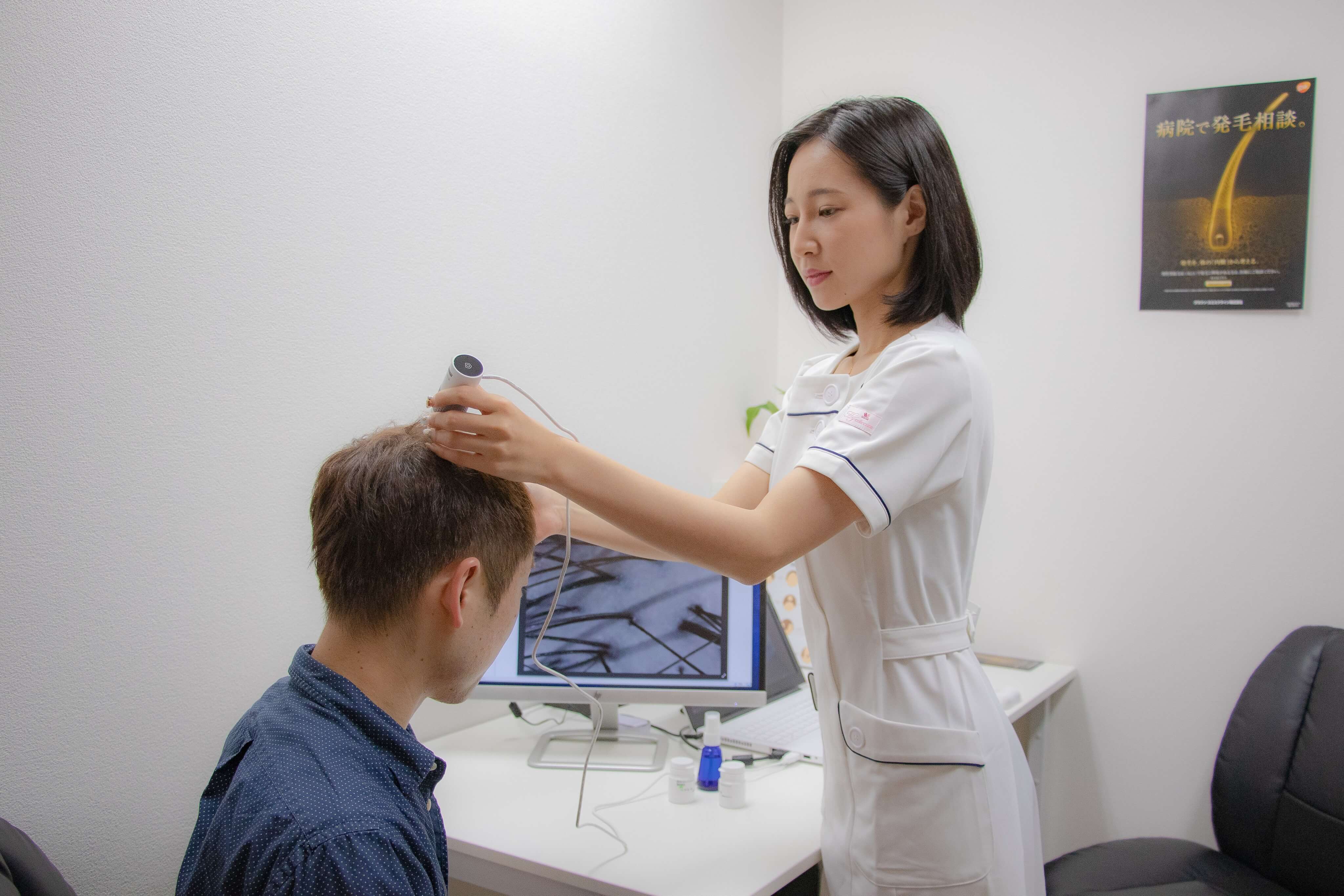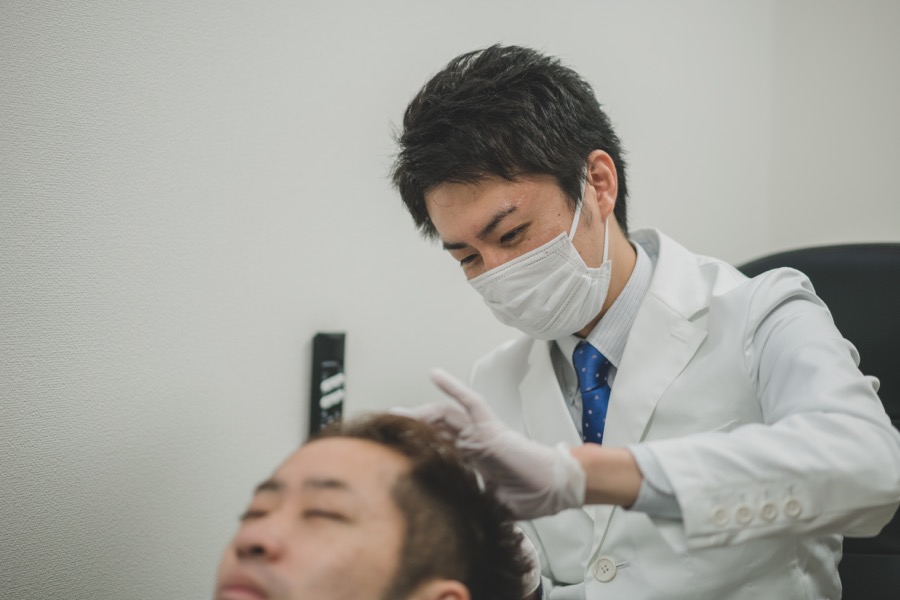 初診は90分程度のお時間をいただいております。 最初の問診から頭皮検査、症状の把握や治療方針のご説明まで、患者さまがご納得いただけるよう真心込めて、フォローさせていただいております。