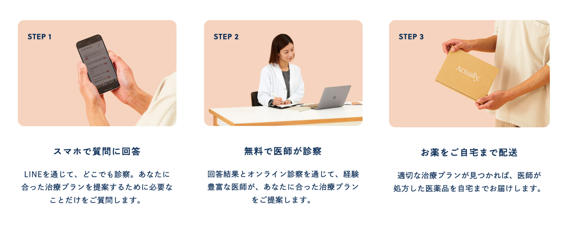 Actually,は”全ての人をデリケートな健康問題から解放する”をミッションに掲げた、オンライン診療サービスです。