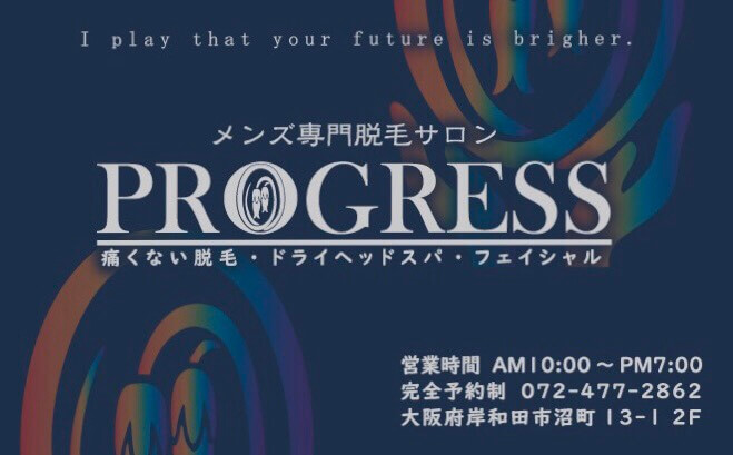 最新の脱毛機を採用しているPROGRESSでは痛みをほとんど感じることなく脱毛が行えるのが特徴です。完全個室・完全予約制なのでゆっくりと自分の時間を過ごすことができます。フェイシャルやボディエステのメニューもあるので脱毛しながらお肌のケアをしたい方にもおすすめです。 岸和田駅からも歩いて2分と駅近なのもうれしいですね。まずは無料のカウンセリングで相談してみてはいかがでしょうか。